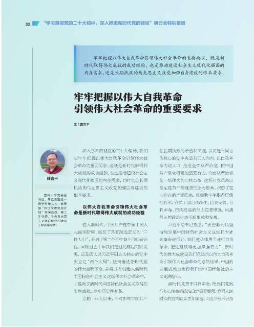部“长江学者奖励计 以伟大自我革命引领伟大社会革 我革命、自我提高的能力显著增强,风清
