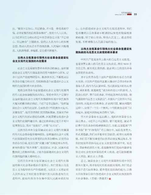 大复兴的根本政治保证。习近平总书记指出,“全面建 自封的,而是勇于自我革命,在直面问题、解决问题的