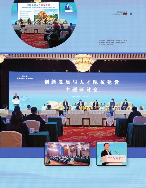 四川党的建设 45 www.scdjw.com.cn 2022 分论坛上,与会专家、领导围绕“创新 发展与人才队伍建设”主题聚智聚力、 论道谋策。图 / 张磊