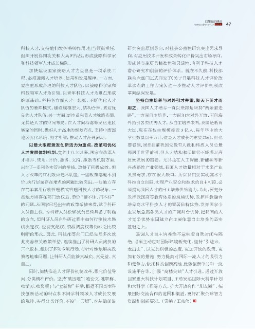要注重形成合理的科技人才队伍,以战略科学家和 革试点的工作方案》,进一步推动人才评价机制改