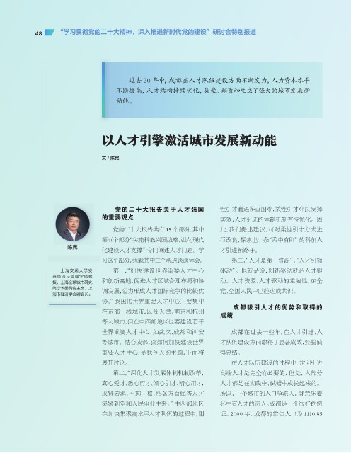 在加快集聚高水平人才队伍的过程中,刚 证。2000 年,成都的常住人口为 1110.85