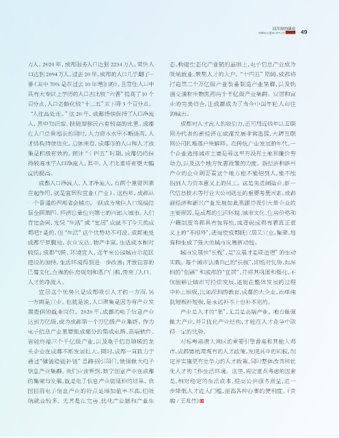 展提供的就业岗位。2020 年,成都的电子信息产业 产业是人才的“巢”,尤其是高端产业。唯有做强