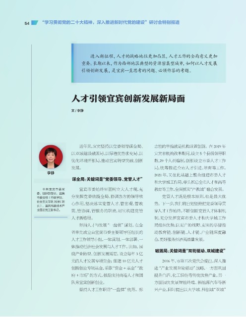 优化环境开新局,推动宜宾转型突破、创新 数、9 个人员编制,创新设立市委人才工作
