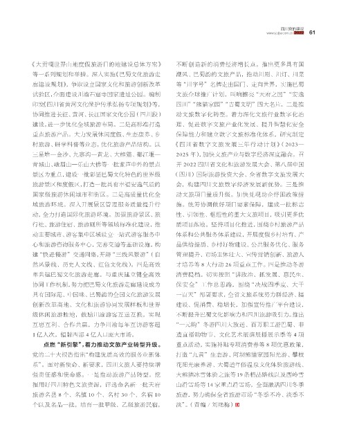 村旅游、研学科普等业态,优化旅游产品结构。以 《四川省数 字文 旅 发 展 三年 行 动计 划》(2023—