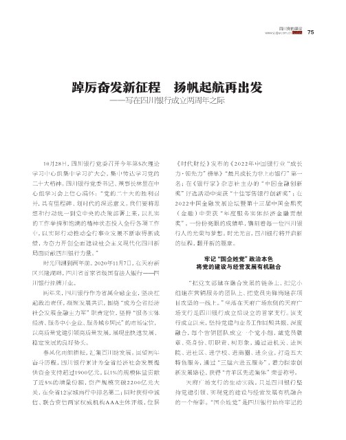10月28日,四川银行党委召开今年第5次理论 《时代 财 经》发布的《2 022年中国银 行业“成长