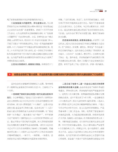 三 省委全会取得了重大成果,作出的系列重大部署为新时代新征程四川现代化建设提供了行动纲领