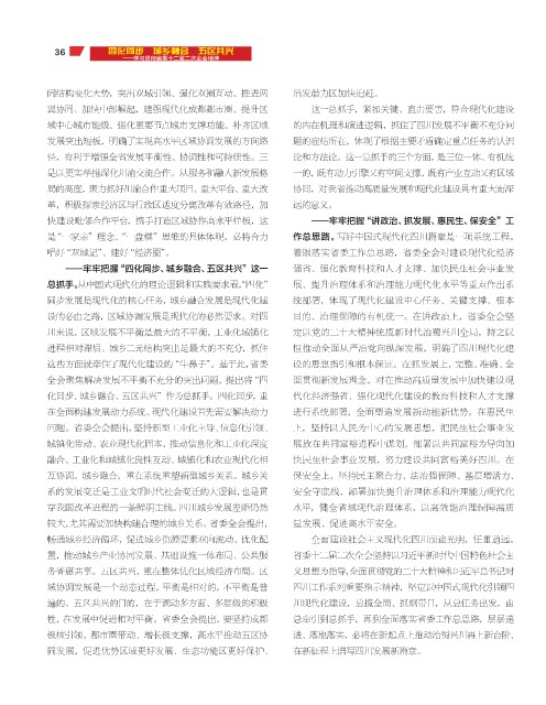 川来说,区域发展不平衡是最大的不平衡,工业化城镇化 定以党的二十大精神统揽新时代治蜀兴川全局,持之以
