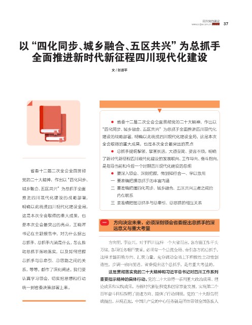 建设的战略部署,明确以此统揽四川现代化建设全局,这是本次