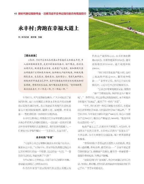 6月8日,习近平总书记来到眉山市东坡区太和镇永丰村,步 地6320亩,水稻种植面积5760亩,建有