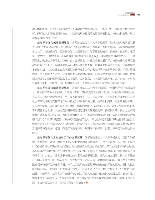 作与业务工作融合互促,努力为新征程上奋力谱写四川发展新篇章提供坚强统计保障。(作者系