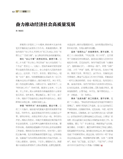 绩为上”“品质为要”,奋力推动经济社会高质量发展。 的二十大报告强调,“空谈误国、实干兴邦”。党员领