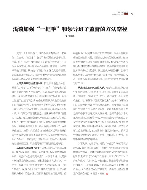 调,要“健全党统一领导、全面覆盖、权威高效的监督 题的有效路径,需要对党的事业高度负责的担当精神,