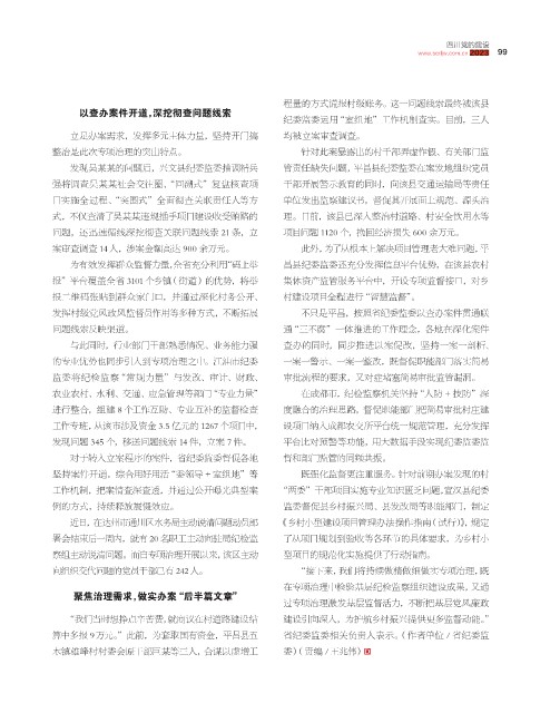 坚持案件开道,综合用好用活“委领导 + 室组地”等 既强化监督更注重服务。针对前期办案发现的村