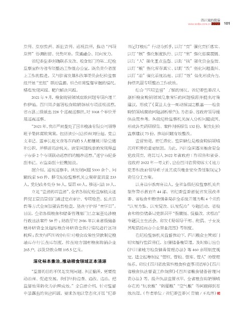 2021 年 9月,粮食购销领域腐败问题专项治理工 剖析粮食购销领域乱象背后的问题根源并提出对策