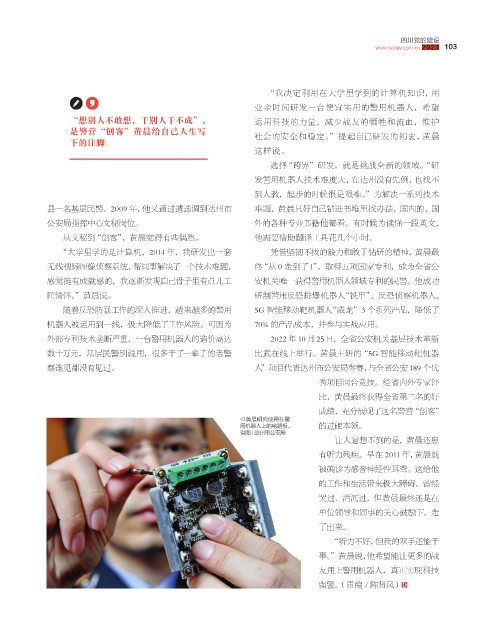 感觉挺有成就感的,我逐渐发现自己骨子里有点儿工 安机关唯一获得警用机器人领域专利的民警。他成功
