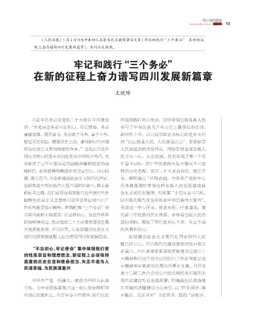 《人民日报》1 月 4 日刊发中共四川省委书记王晓晖署名文章《牢记和践行“三个务必” 在新的征