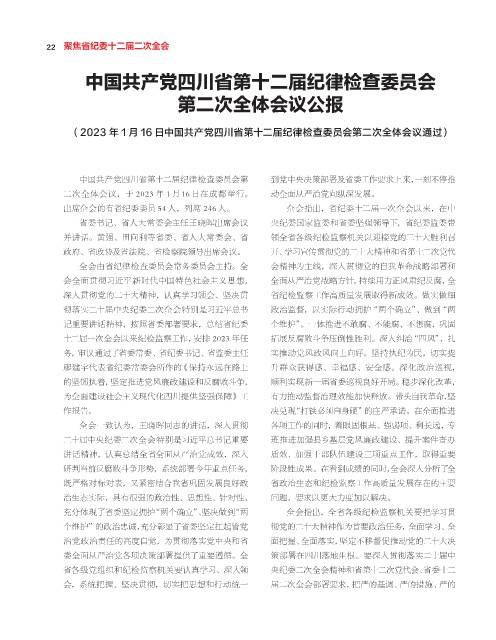(2023 年 1 月 16 日中国共产党四川省第十二届纪律检查委员会第二次全体会议通过)