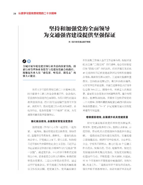 文 / 四川省交通运输厅党组