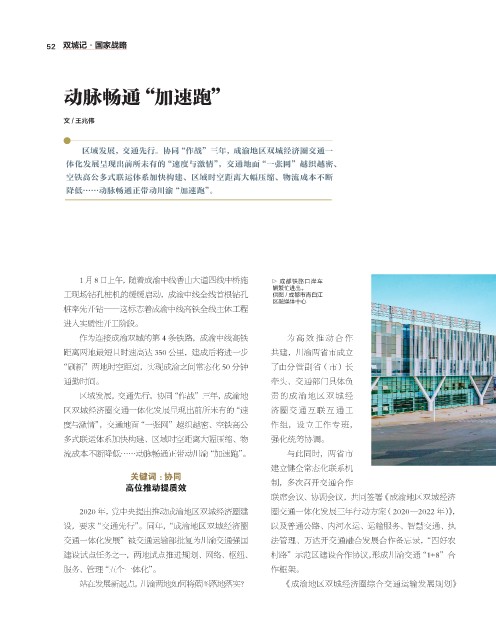 区域发展,交通先行。协同“作战”三年,成渝地 责的成 渝 地 区 双 城 经