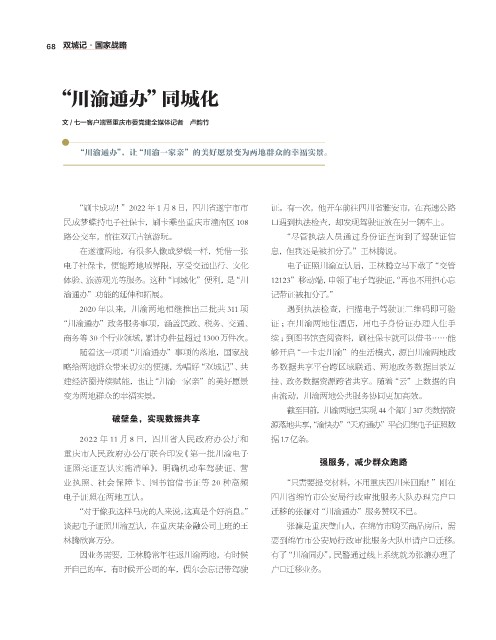 随着这一项项“川渝通办”事项的落地,国家战 够开启“一卡走川渝”的生活模式,源自川渝两地政