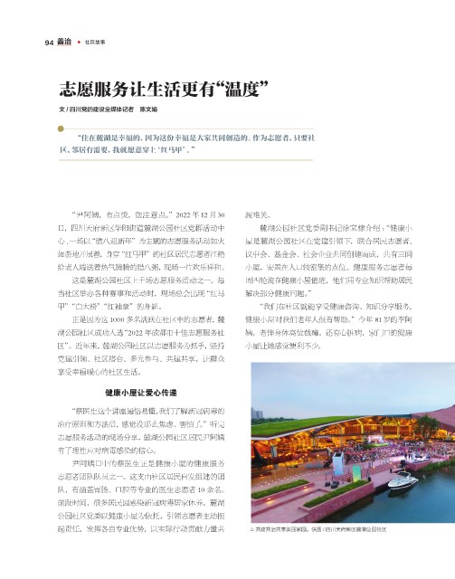 湖公园社区成功入选“2022 年成都市十佳志愿服务社 姨,老伴身体高位截瘫,还有心脏病,家门口的健康