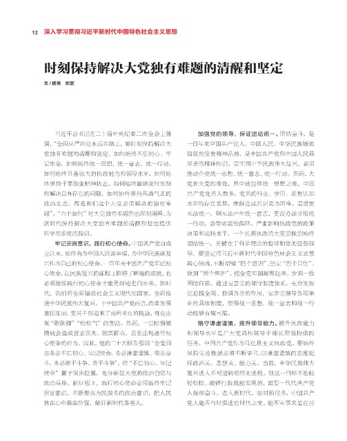 党独有难题的清醒和坚定。如何始终不忘初心、牢 铸就的宝贵精神品质,是中国共产党和中国人民最