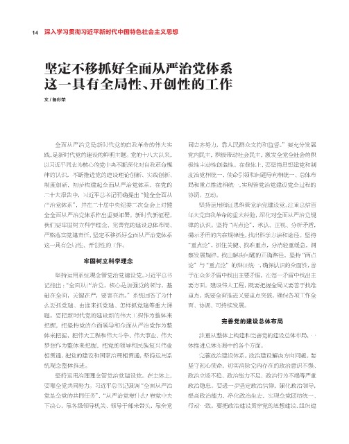 全面从严治党是新时代党的自我革命的伟大实 同志齐努力,靠人民群众支持和监督。”要充分发展