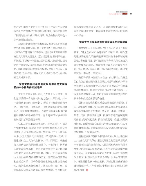 化、自我完善、自我革新、自我提高的制度规范体 先,要强调整体性。要将党的自我革命制度规范体系