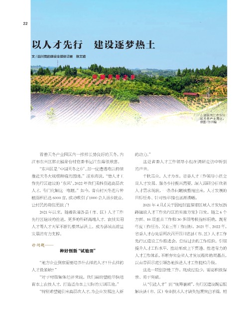 作先行区建设的‘东风’,2022 年我们柔性引进高层次 足人才发展、服务乡村振兴需要,深入调研分析我省