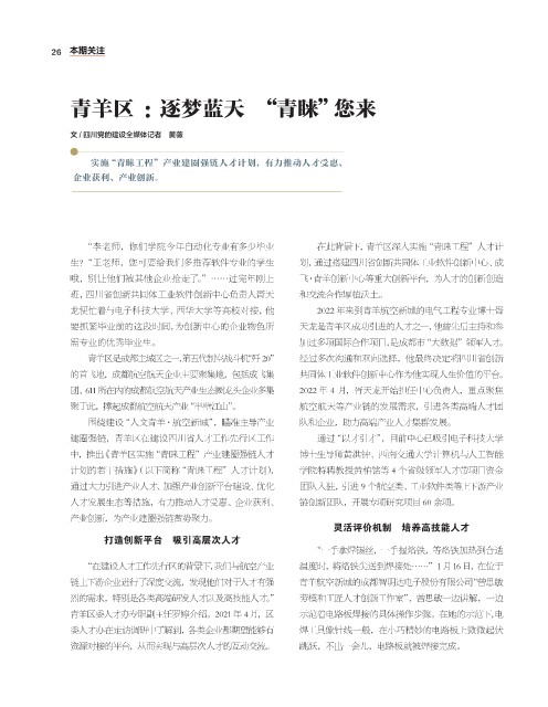 围绕建设“人文青羊·航空新城”,瞄准主导产业 队和企业,助力高端产业人才集群发展。