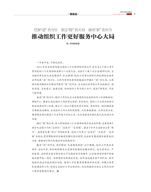 围绕中心、服务大局是组织工作的重大使命、责任担当。党的二十大提出新时代