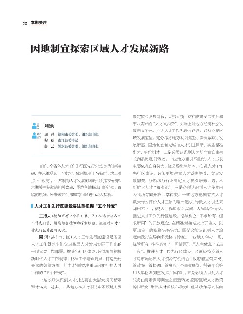 本期关注特邀请相关嘉宾,围绕各地探索出的经验、面 断扩大人才“蓄水池”。三是必须认识到人才使用由