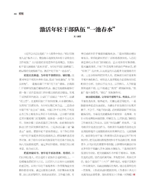 激活年轻干部队伍“一池春水”
