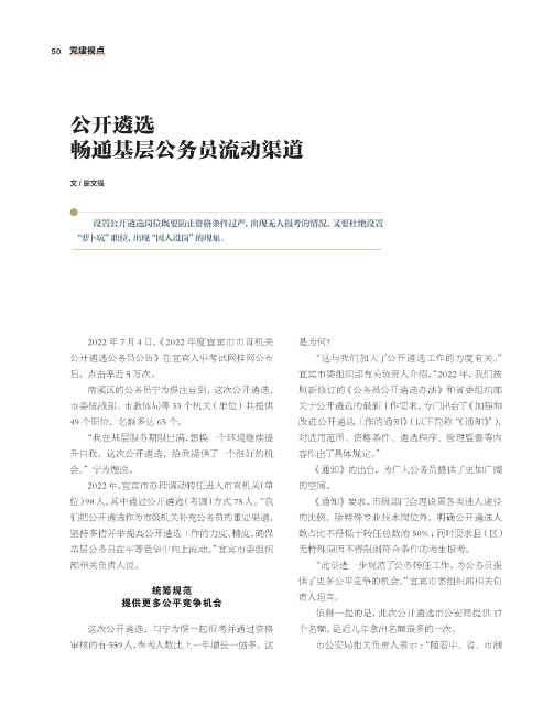 供了更多公平竞争的机会。”宜宾市委组织部相关负