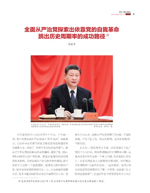 2022 年 1 月 18 日,中共中央总书记、国家主席、中央军委主席习近平在中国共产党第十九届中央纪律检查