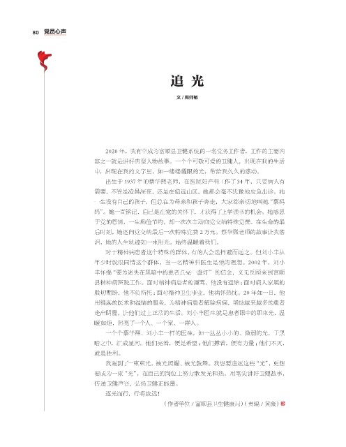 要成为一束“光”,在自己的岗位上努力散发光和热,用笔尖讲好卫健故事,
