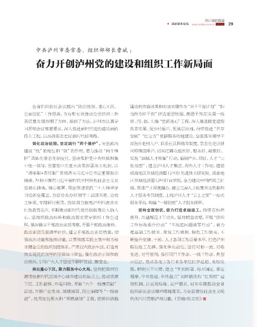 奋力开创泸州党的建设和组织工作新局面