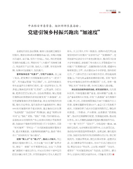 村振兴。雅安市95%的面积都是中高山区,实现乡村振 家到村担任乡村振兴“名誉村书记”“发展顾问”,定