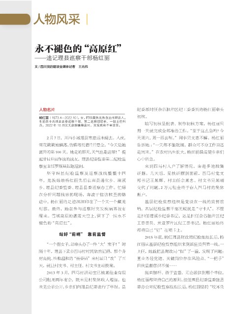 途中,杨红丽的足迹深深印在了一个又一个藏羌 基层纪检监察组织是党设在一线的监督前