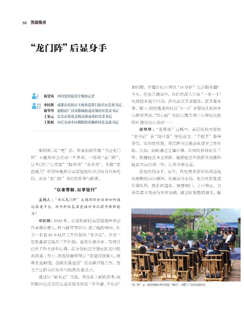 坐坝坝,说“亮”话。我省创新开展“书记龙门 验,比如,如何通过党建引领,从细处抓好社区工