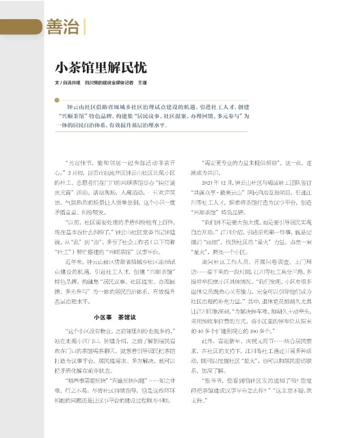 欢在门口的茶馆喝茶聊天,就想着引导居民把茶馆 求,在社区的支持下,江川等社工通过开展多种活