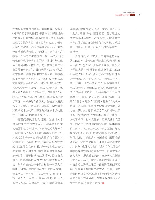 为规范》《成都体育学院武德教育手册》,将 项目,通过大学生武术社团活动、道德情景