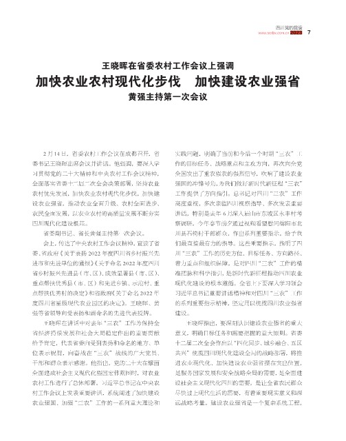 农村优先发展,加快农业农村现代化步伐,加快建 工作提供了方向指引。总书记对四川“三农”工作
