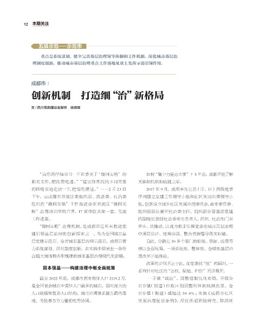 层党建示范市、全省城市基层治理示范市,成都市着 自此,分散在 30 多个部门的职能、资源、政策等