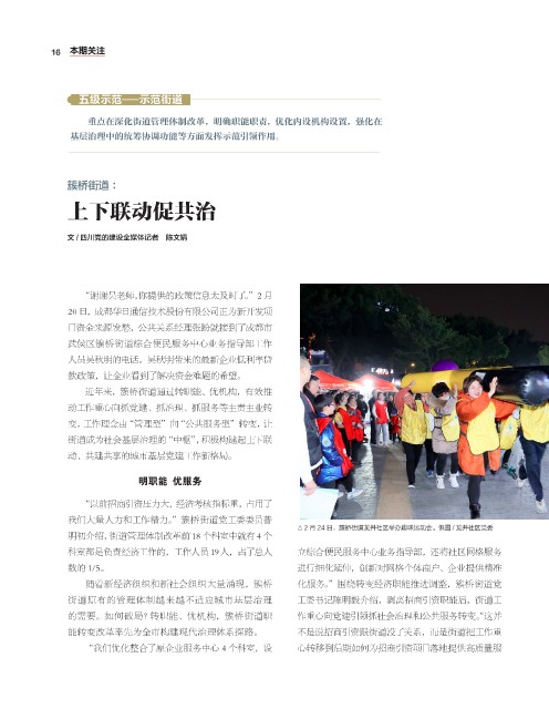 的需要。如何破局?转职能、优机构,簇桥街道职 作重心向党建引领抓社会治理和公共服务转变。这并
