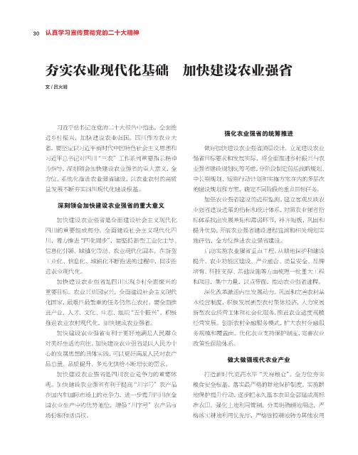 加快建设农业强省是四川农业竞争力的重要体 打造新时代更高水平 “天府粮仓”。全方位夯实