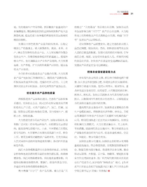 地。优化粮食生产空间布局,抓好粮食产业基地和产 府粮仓”“天府菜油”等区域公共品牌,加快形成具