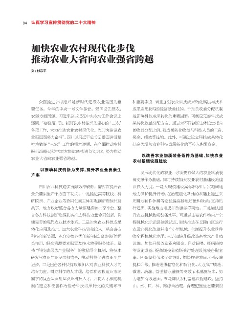 振兴战略过程中加快农业农村现代化步伐,努力推动