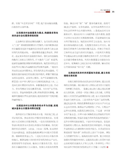 教育培育等方面倾斜,根据公共服务的类型、性质 业农村现代化提供人才智力支持。(作者单位 / 四川