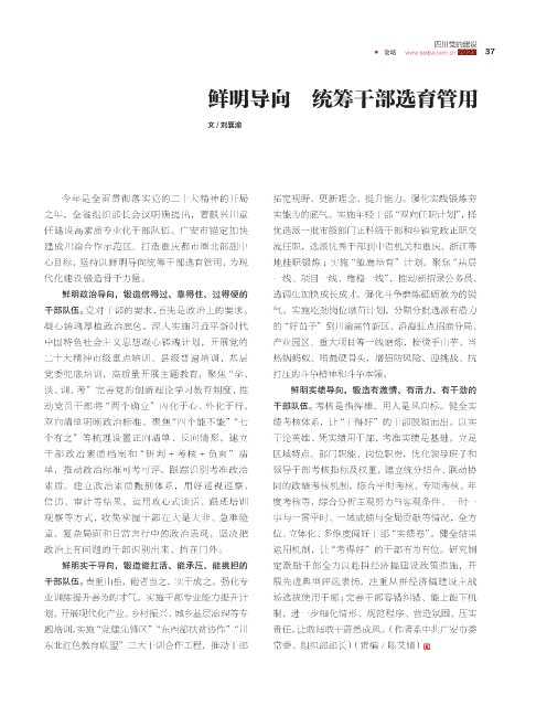 建成川渝合作示范区、打造重庆都市圈北部副中 流任职,选派优秀干部到中省机关和重庆、浙江等
